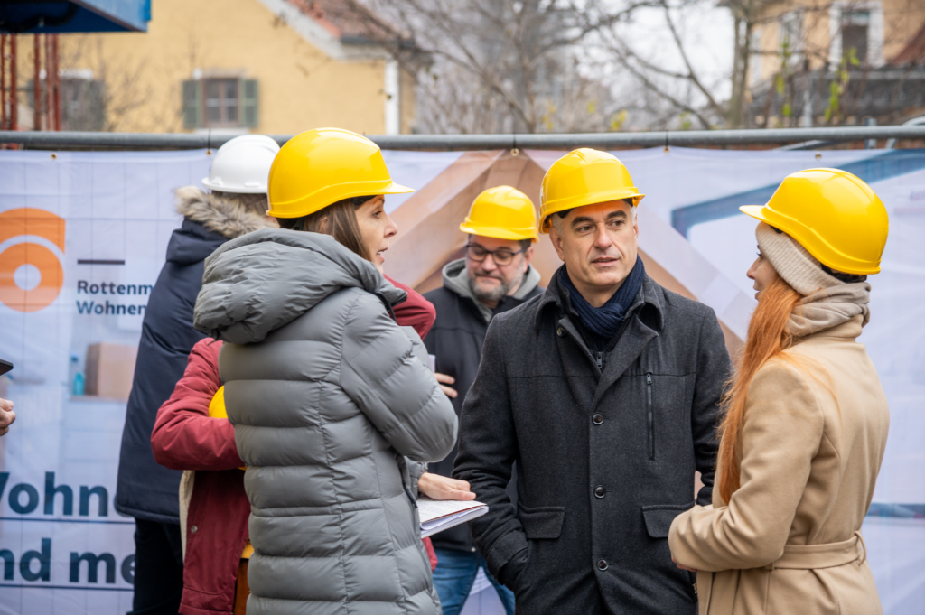 Sowohl Landeshauptfrau-Stellvertreterin Manuela Khom als auch Wohnbaulandesrätin Simone Schmiedtbauer überzeugten sich heute persönlich vom Fortschritt der Arbeiten.