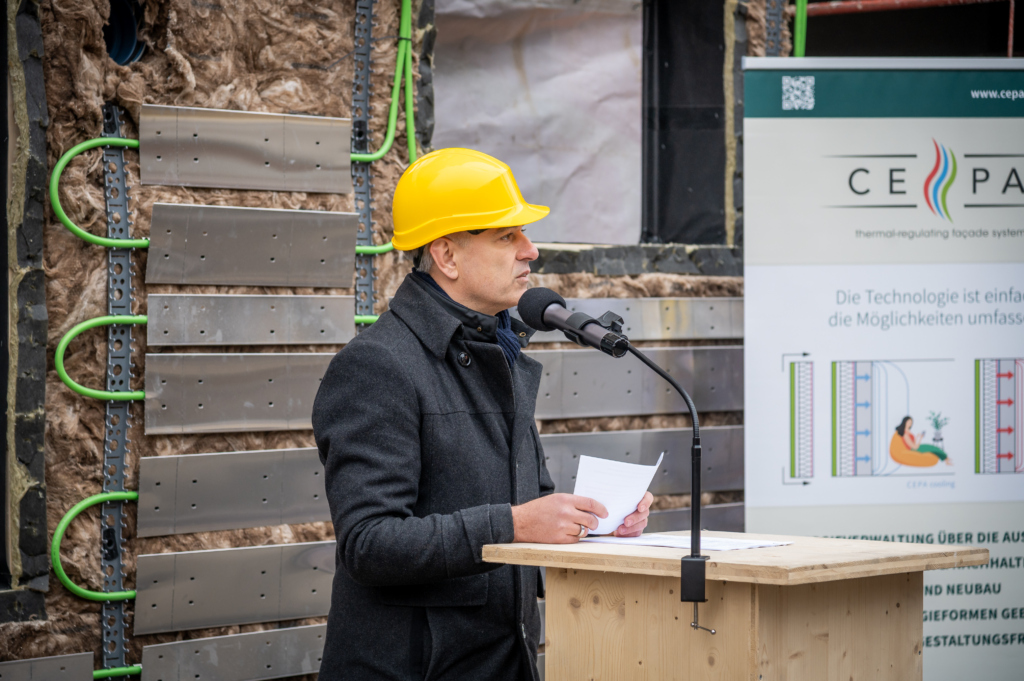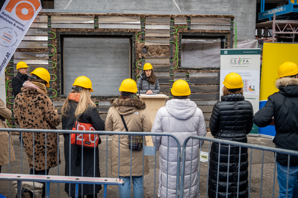 Gemeinsam mit Partnern aus dem Großforschungsprojekt RENVELOPE stellte TOWERN3000 das System vor, das in Graz aktuell an einem Studentenwohnheim umgesetzt wird – inklusive der eigens entwickelten CEPA®-Energiefassade zur Beheizung und moderaten Kühlung von außen.