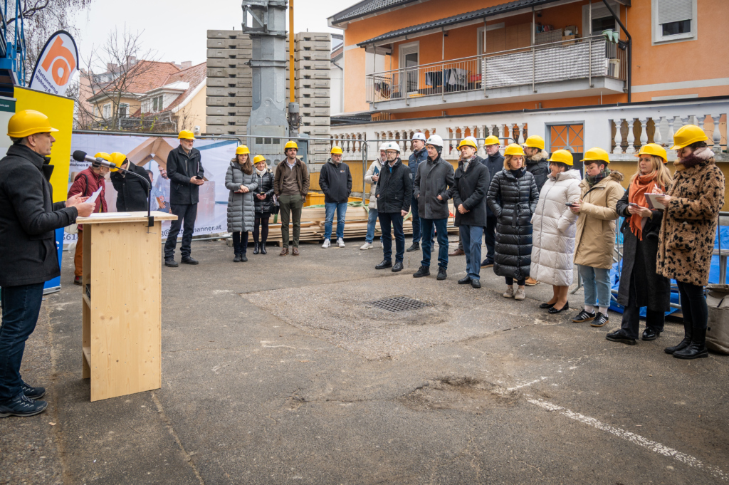 Bei einer exklusiven Baustellenbesichtigung in der Grünen Gasse 48, Graz wurde heute ein technischer Meilenstein präsentiert: die „Serielle Sanierung“ – eine Bauinnovation, die den Gebäudebestand schnell, ressourcenschonend und minimalinvasiv erneuert.